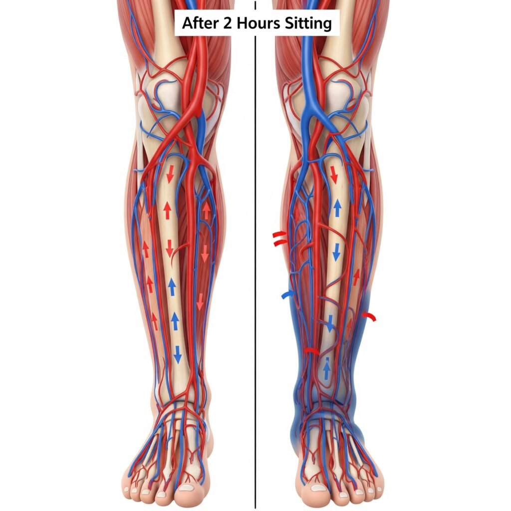 Key Point: Uninterrupted sitting quickly impairs your vascular health by causing blood to pool and reducing blood flow, especially in your lower body.